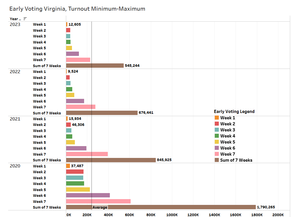 By the end of early voting in 2021, for example, the early vote tally was at 845,925. Many Republican voters chose to turn out on election day.