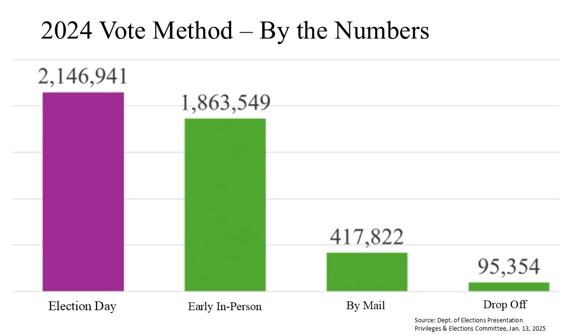 More than 4.5 million ballots were cast in Virginia's 2024 General Election, and over 400,000 were cast by mail-in ballot, according to the Department of Elections.
