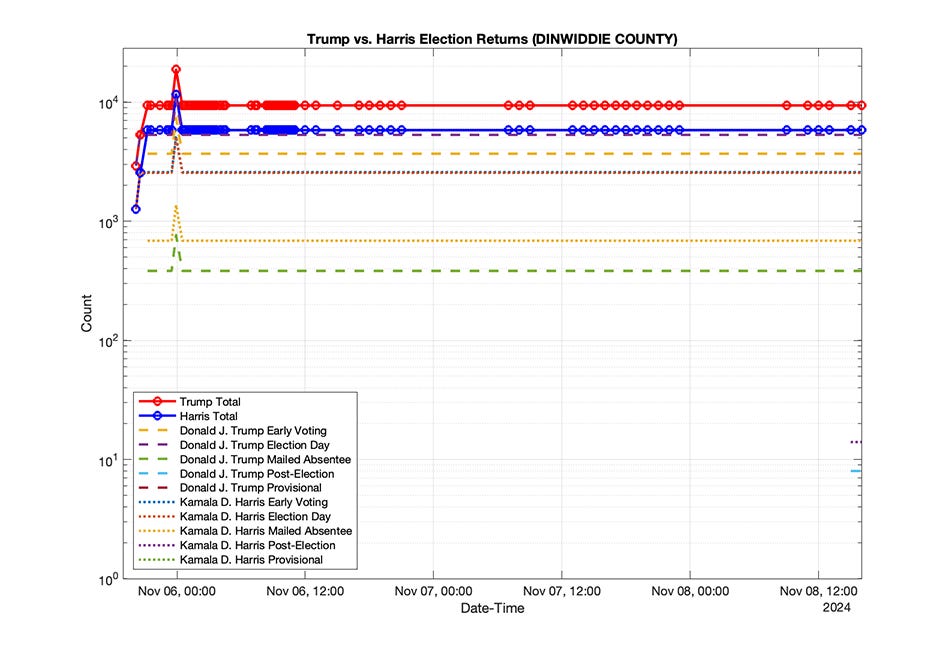 Our team at EPEC monitored the Election Night Reporting (ENR) data feed published by the Virginia Department of Elections (ELECT) during the 2024 General election.